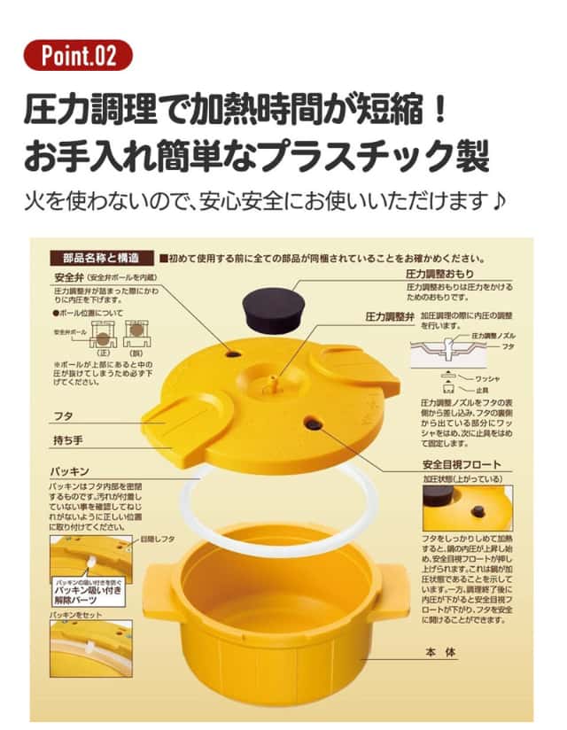 電子レンジ圧力鍋 極み味 イエロー MWP1-239571 電子レンジ専用 プラスチック製 調理鍋 黄色 圧力調理 安全 安心 キッチン スケーター
