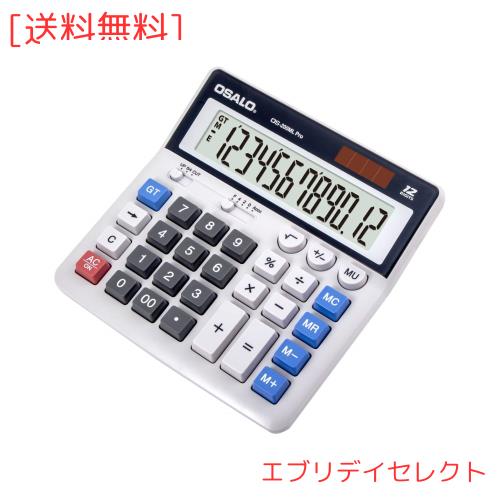 卓上電卓 12桁大型液晶計算機 大きい文字 大きいボタン おしゃ れソーラーでんたく (OS-200ML PRO)