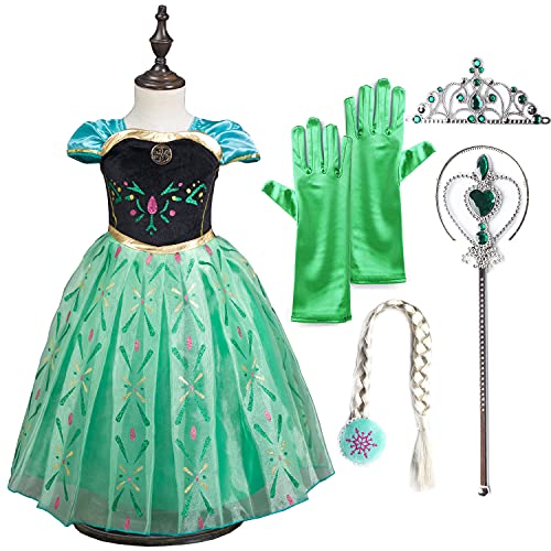 [YITING] 子供 用 プリンセス エルサ ドレス コスチューム アナ雪エルサ ドレス 豪華5点セット ・グリーン (プリンセスドレス, ハートの