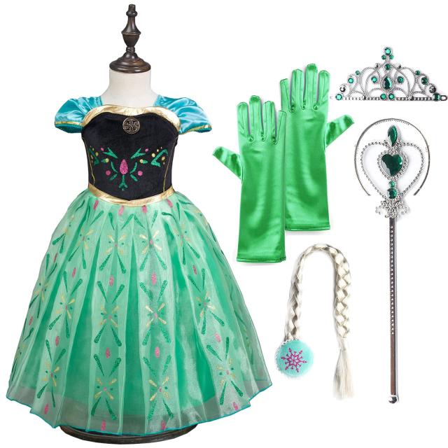 届いたその日から憧れのプリンセスになれる!エルサ アナコスプレ衣装 ドレス! とっても可愛いドレスコスチューム豪華7点セット☆