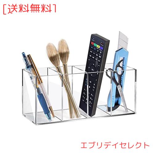 BHCanae ペン立て アクリル 4格 仕切り ぺんたて 小物入れ ペンスタンド 卓上収納 ペン入れ 卓上 筆筒 メイクブラシ立て 文房具 収納 ク