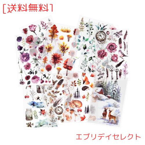 10枚転写ステッカー 手帳シール スクラップブックステッカー フラワーステッカー 装飾用ステッカー 手作りステッカー 透明タイプ スクラ