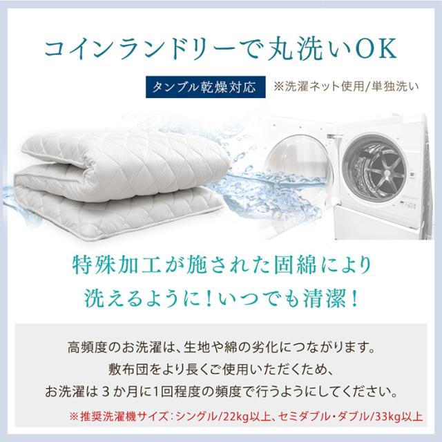 当店限定! コインランドリーで丸洗い 三層敷布団 三層 洗える敷布団 洗える 敷布団 セミダブル セミダブルサイズ 敷き布団 敷ふとん 布団 来客用 マットレス テイジン 帝人 固綿 軽量 ウォッシャブル 洗濯 清潔 三層敷 洗濯可能