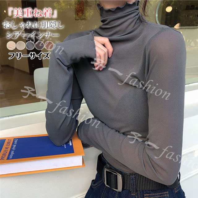 シアートップス 春新作 送料無料 カットソー レースインナー レディース 長袖 肌隠し レースネック シースルー ブラウス チュール チュールインナー セクシー 薄手 透け感 ハイネック 気になる露出をカバー 秋冬 バレンタイン
