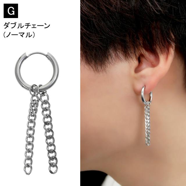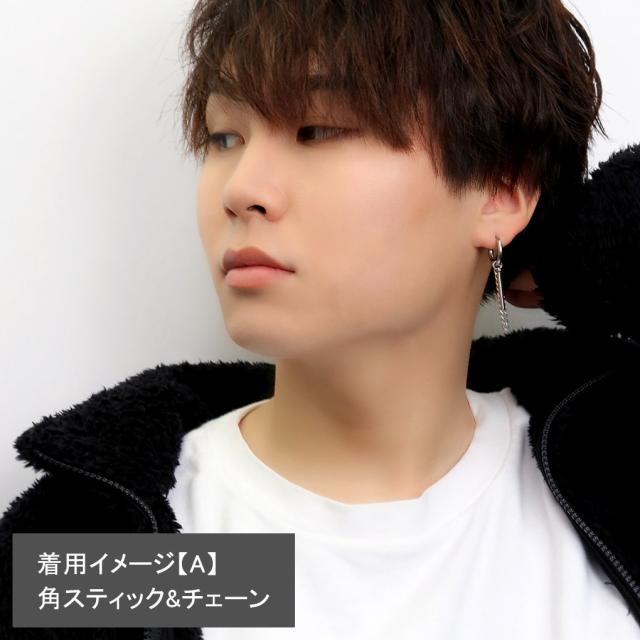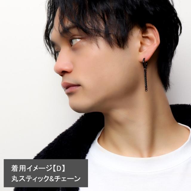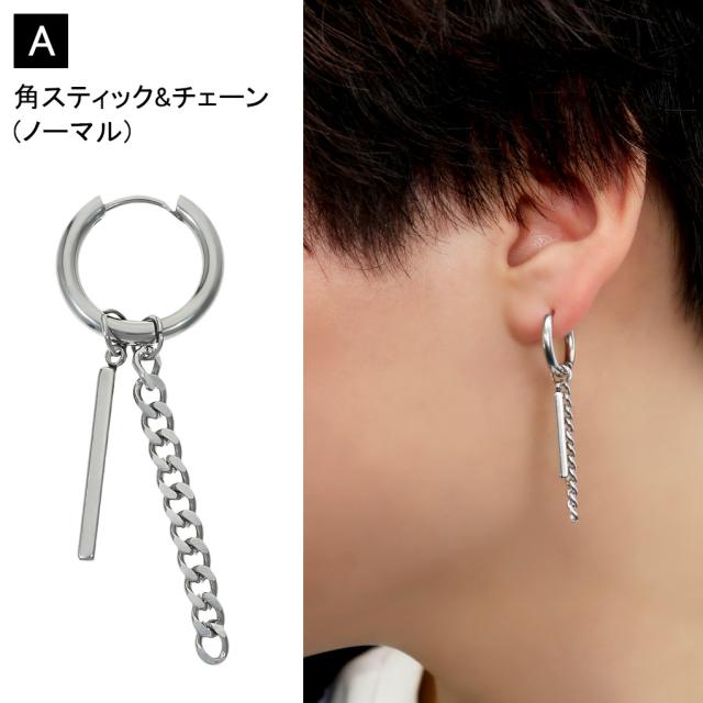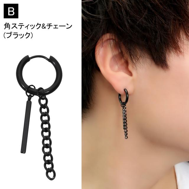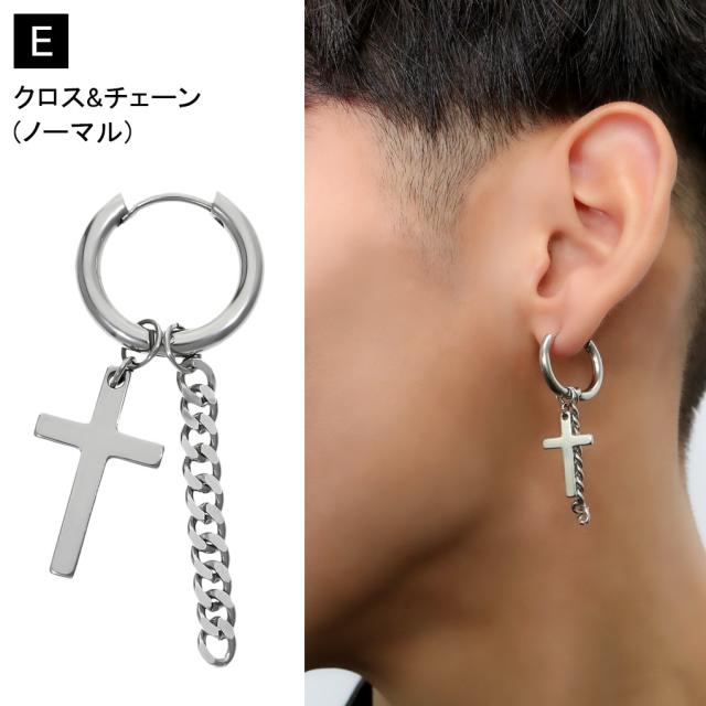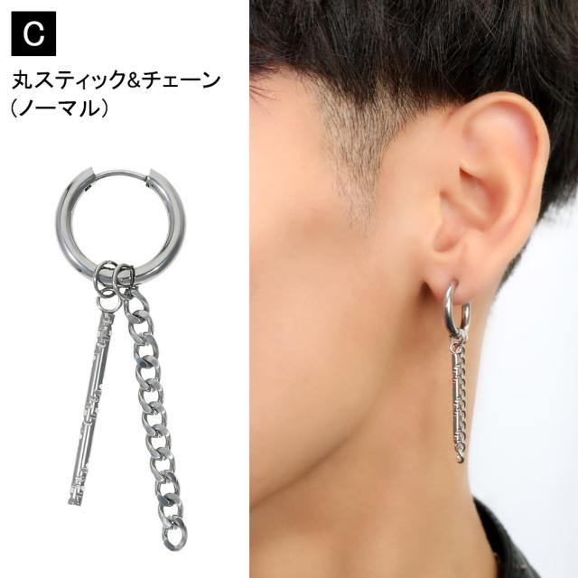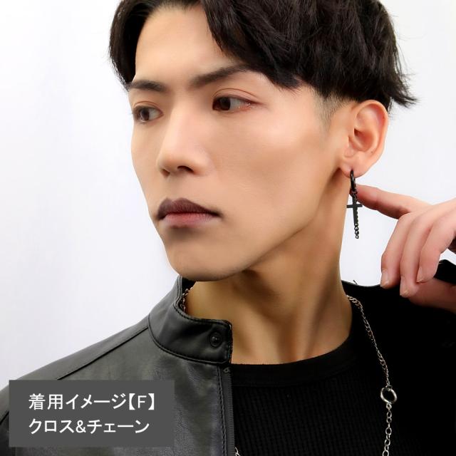フープピアス チャーム ドロップ チェーン ピアス 1P 片耳用 ステンレス 揺れる ブラック 黒 喜平チェーン スティック バー クロス 十字架 キヘイ