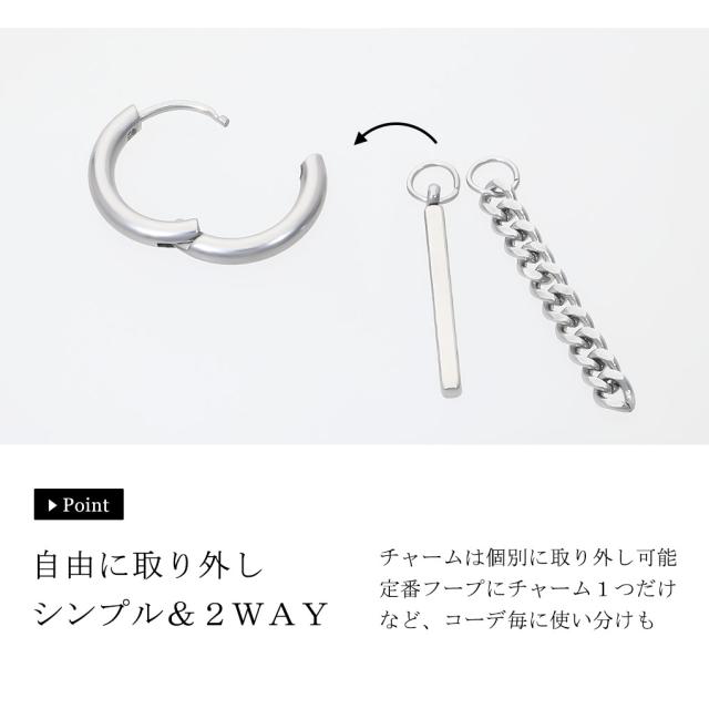 チャームは個別に取り外し可能、定番フープにチャーム1つだけなどコーデ毎に使い分けも