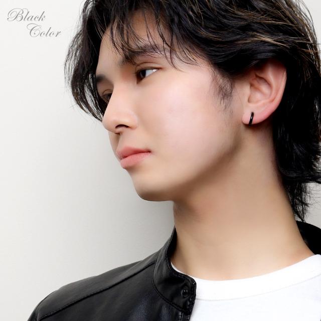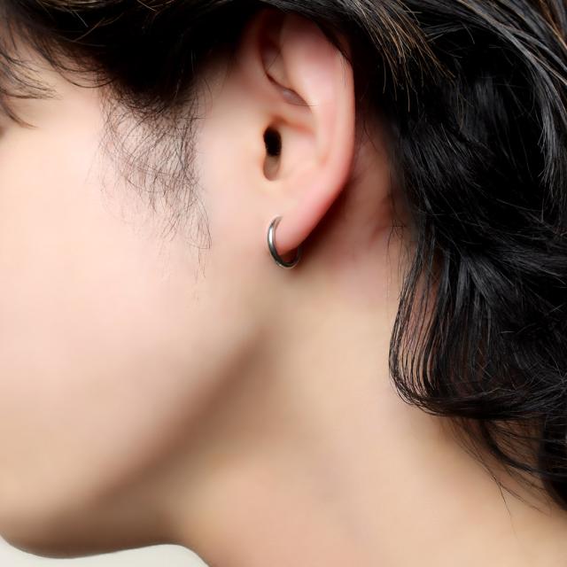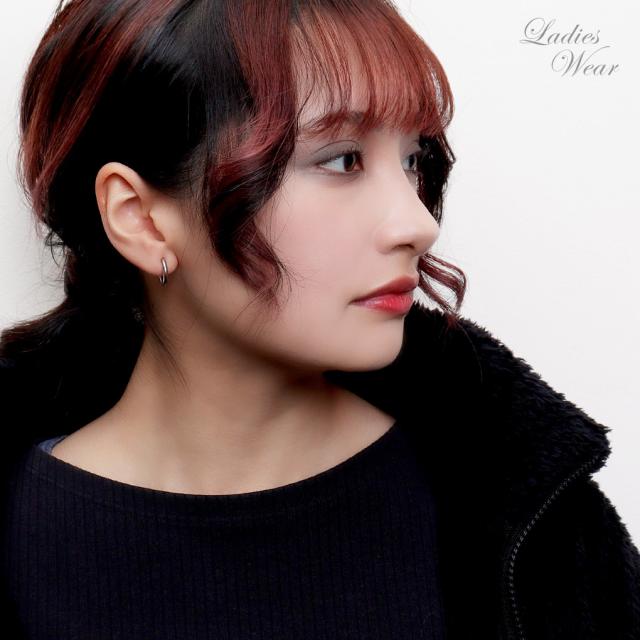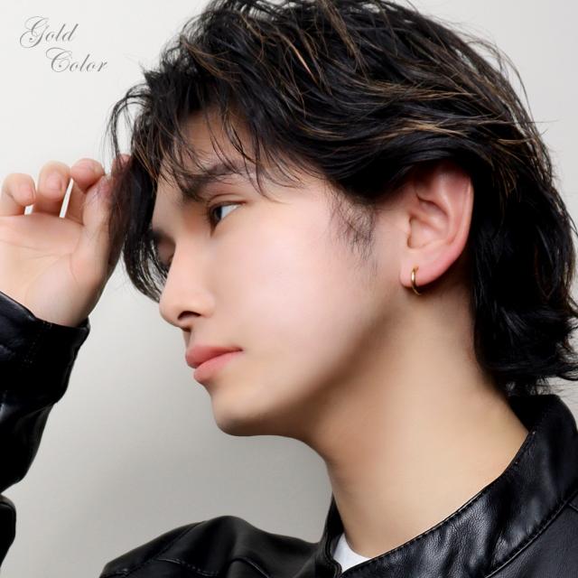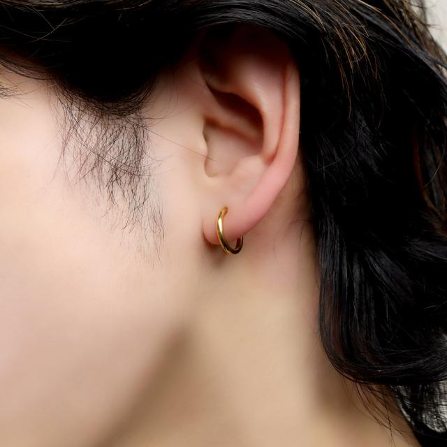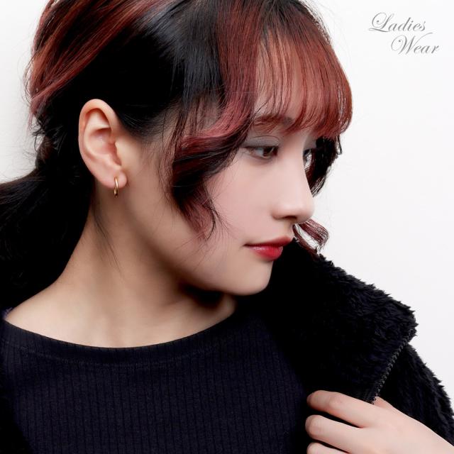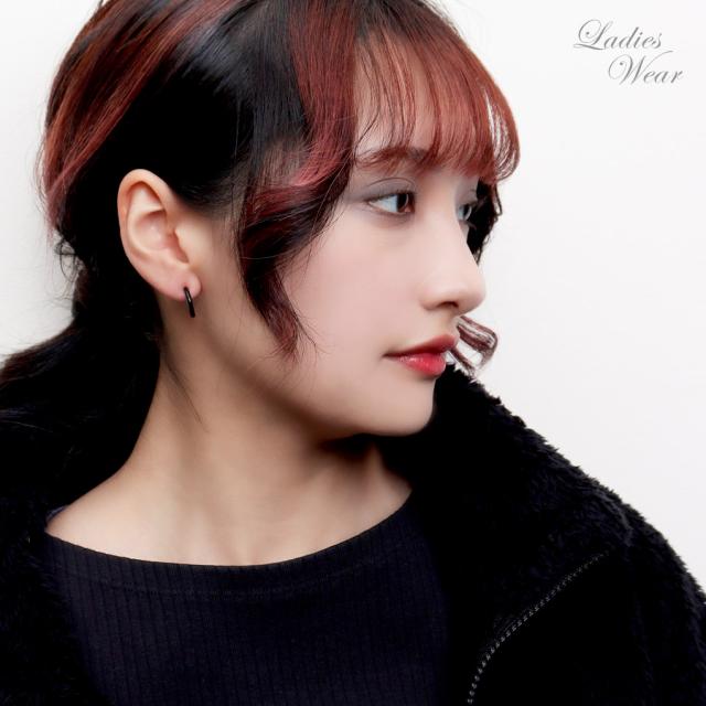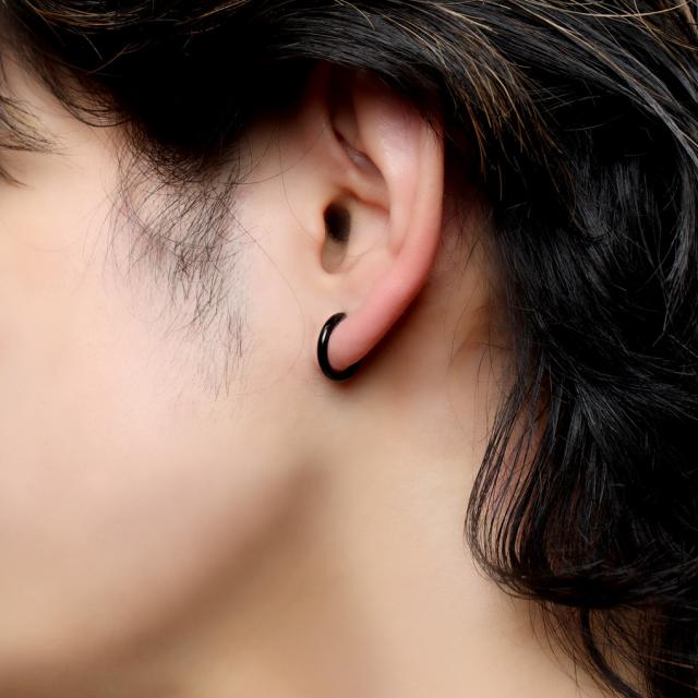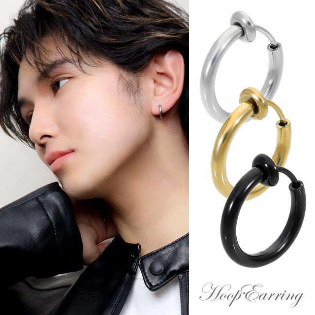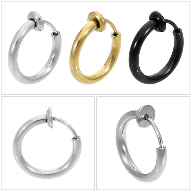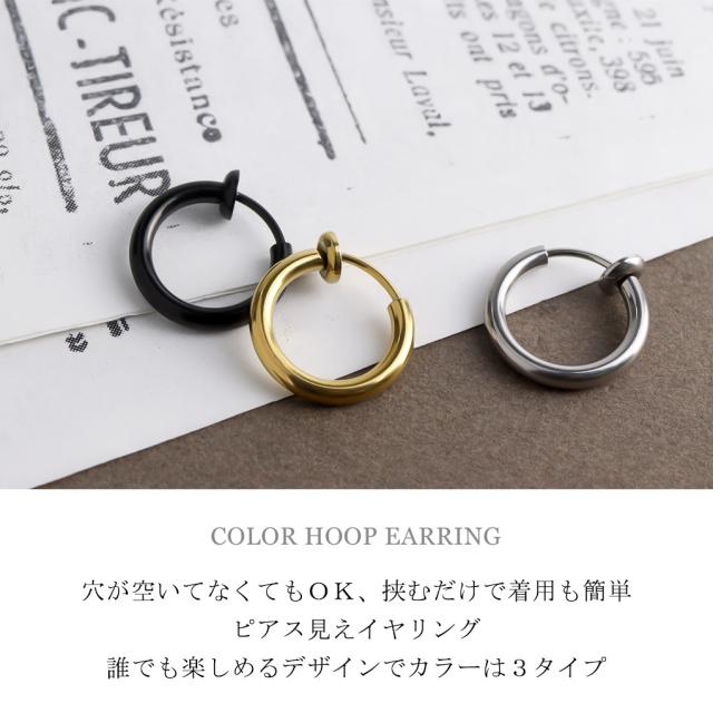 イヤリング フープタイプ シンプル ブラック ゴールド ステンレス フープ リング カラー 黒 金 ピアスみたいな ピアスっぽい ピアス風