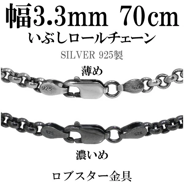 シルバーチェーン ネックレス チェーン いぶしロールチェーン 幅約3.3mm 70cm シルバー925 銀 ハード ロール 甲丸 こうまる シルバー925チェーン