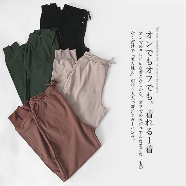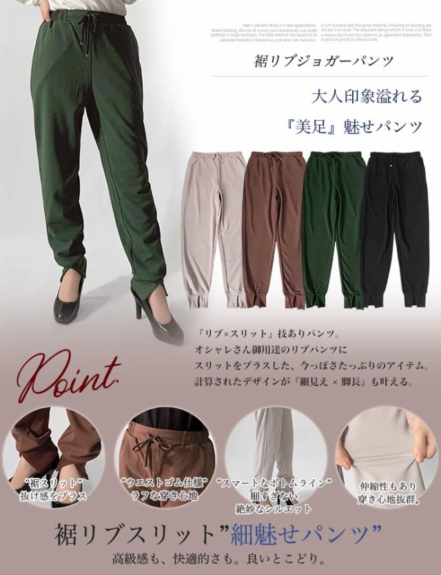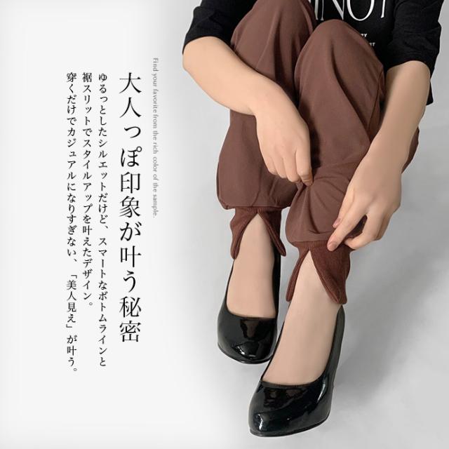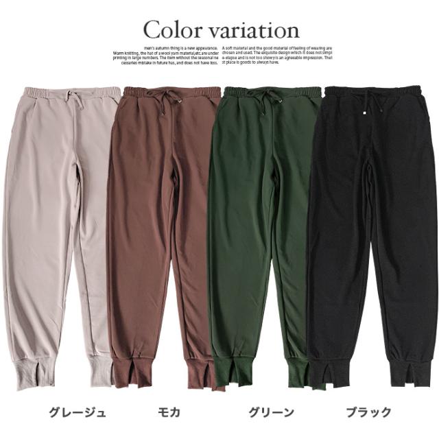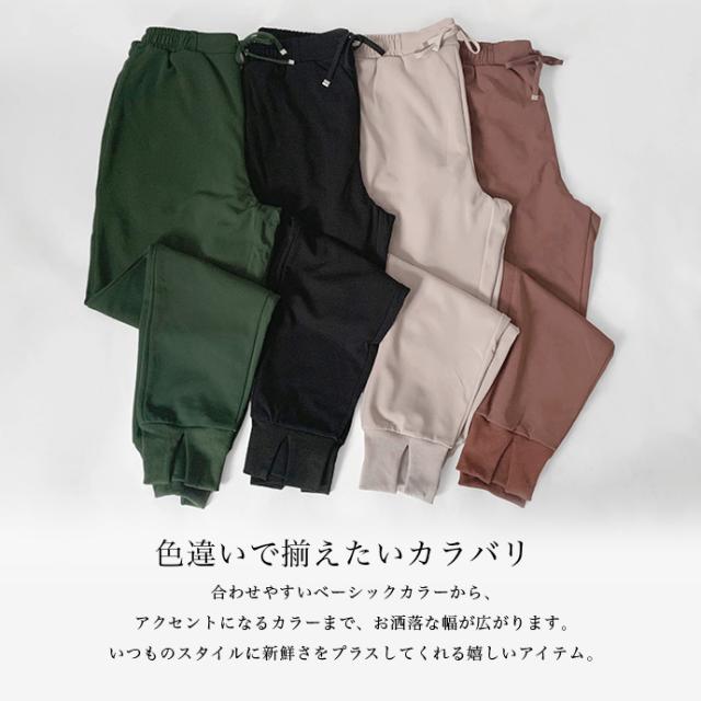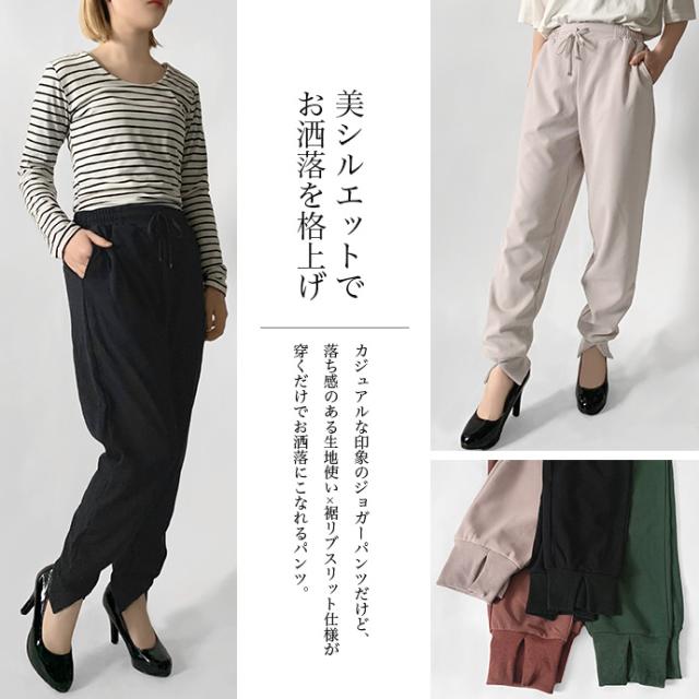 ジョガーパンツ イージーパンツ ロングパンツ パンツ 総ゴム 裾スリット カットジョーゼット ウエストゴム ボトムス 美脚 脚長 レディース 無地 値下げ 送料無料