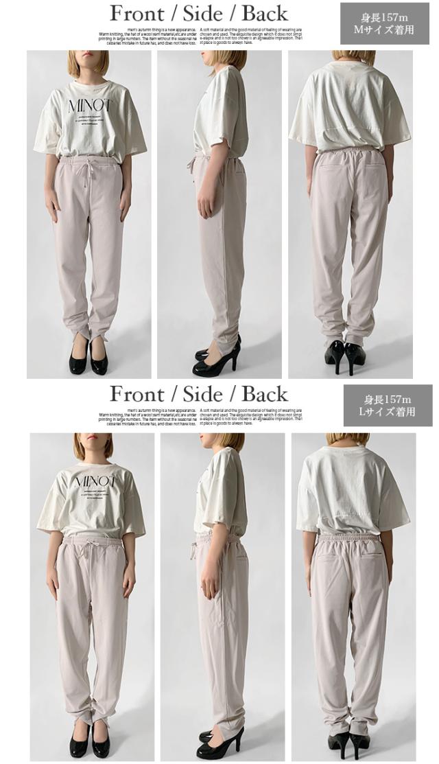 《M》ウエスト(ゴム)最小68〜最大94/ヒップ102/ワタリ31/股上33/股下69/裾幅12