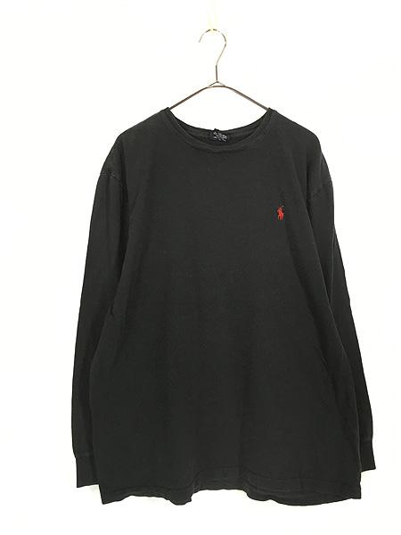 古着 90s Polo Ralph Lauren ワンポイント ソリッド 長袖 Tシャツ ロンT 黒 L 古着