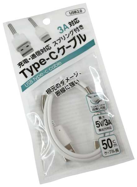 Type-C充電ケーブル 3A充電・通信対応 スプリング付 ケーブル長50cm (100円ショップ 100円均一 100均一 100均)