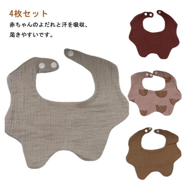 綿 セット ガーゼ 出産祝い 女の子 男の子 よだれカバー 【4枚セット】 スタイ コットン 花びら型 【4枚セット】 シンプル おしゃれ スナップボタン ビブ ベビー かわいい 食事 通気性 吸収性 保育園 赤ちゃん
