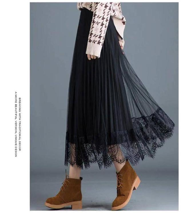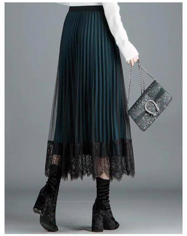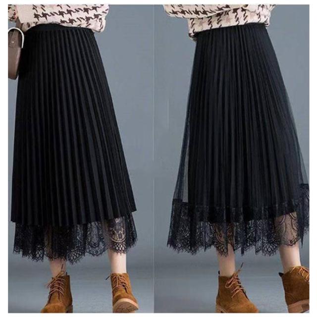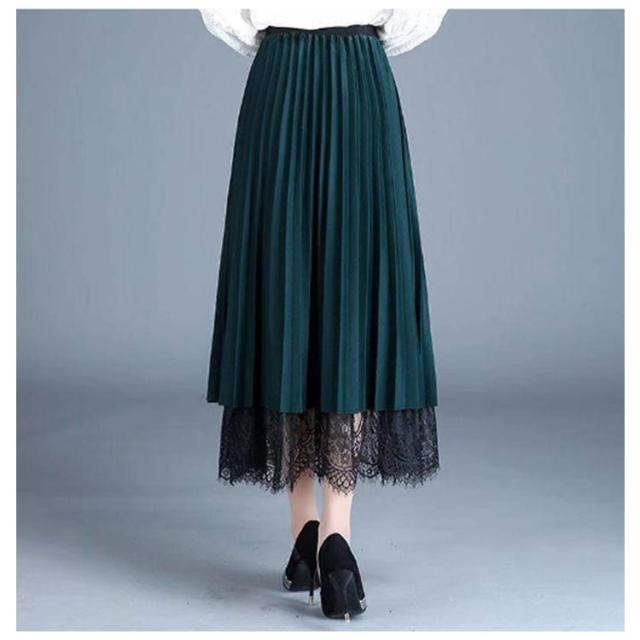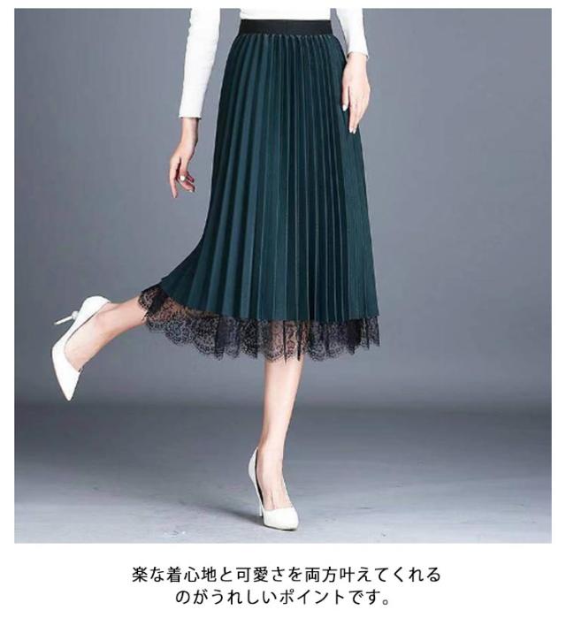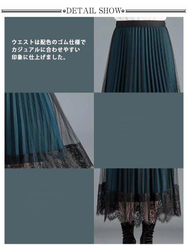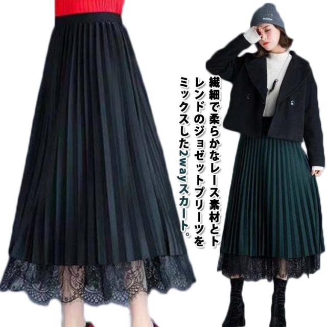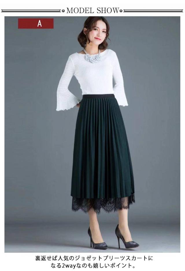 無地 レーススカート 春 プリーツスカート 夏 ミモレ丈 フレア Aライン スカート レディース リバーシブル 裏地付き 秋 80cm プリーツスカート ゴムウエスト 大人可愛い きれいめ 膝下 体型カバー