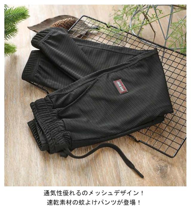 | 通気性優れるのメッシュデザイン!速乾素材の蚊よけパンツが登場! 薄手なので真夏でも快適に着こなせるのも嬉しいポイントです。 ウェストと裾が柔らかいゴムで締まって、長時間着用しても窮屈さなどは一切なく楽です。 真夏の日焼け対策や蚊対策などにもぜひおすすめ1本です。 | |