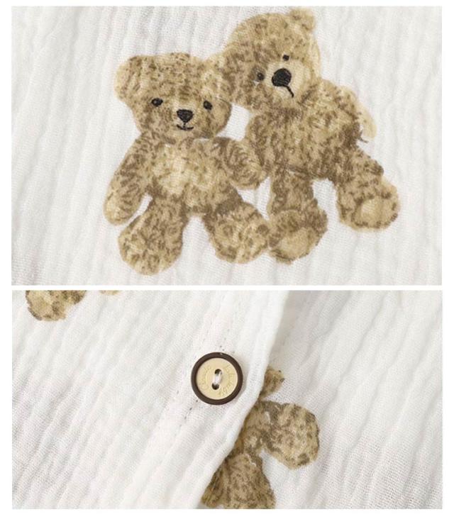 | 肌にやさしいガーゼ素材のパジャマ 敏感肌のお子様にも安心のガーゼ100% お子さまの寝汗もしっかり吸収 涼しく可愛いデザインでお部屋着におすすめです | |