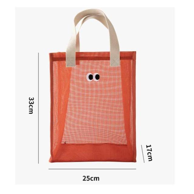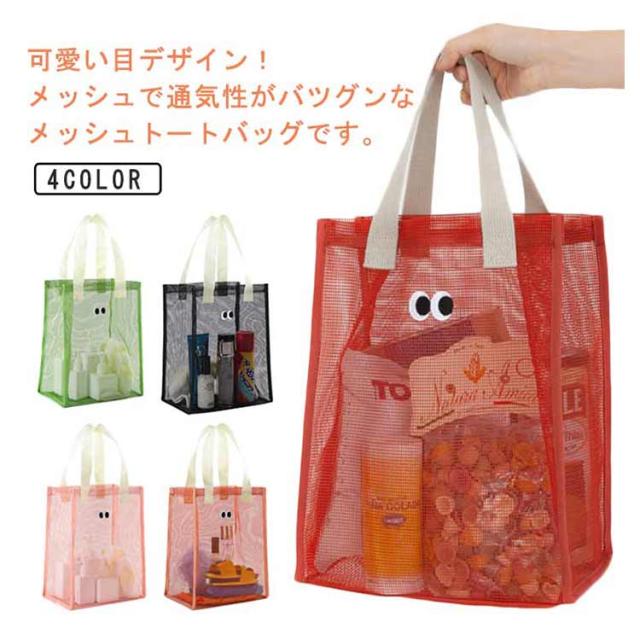 | 可愛い目デザイン!メッシュで通気性がバツグンなメッシュトートバッグです。 タオル、化粧品、スキンケアからネイルケアまで細かな身の回り品も一緒に収納しちゃえます。 とても軽いので畳んで収納すれば旅行や出張などにも手軽に持って行けます。 水泳、温泉、ご旅行、ジム、入院時のベットサイドなどなどあらゆるシーンで大活躍。 | |