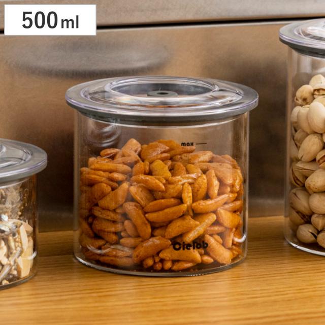 保存容器 300ml Cielob 真空キャニスターラウンド ( セーロブ キャニスター 電動 真空 密閉容器 保存 容器 密閉 ガラス 0.3L 食品保存 真空容器 真空保存 ガラス容器 )