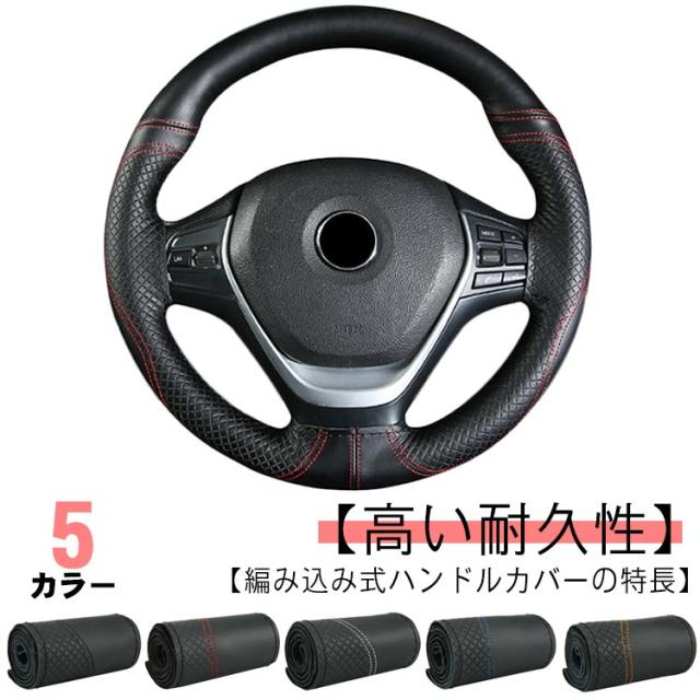 全5色!ハンドルカバー 全5色!ハンドルカバー 編み上げ ステアリングカバー 軽量 編み込み 牛革 ハンドル 本革 ステアリング カバー 無地 手縫い おしゃれ 滑り止め シンプル 薄手 耐摩耗 インテリア 車内用品 内装用