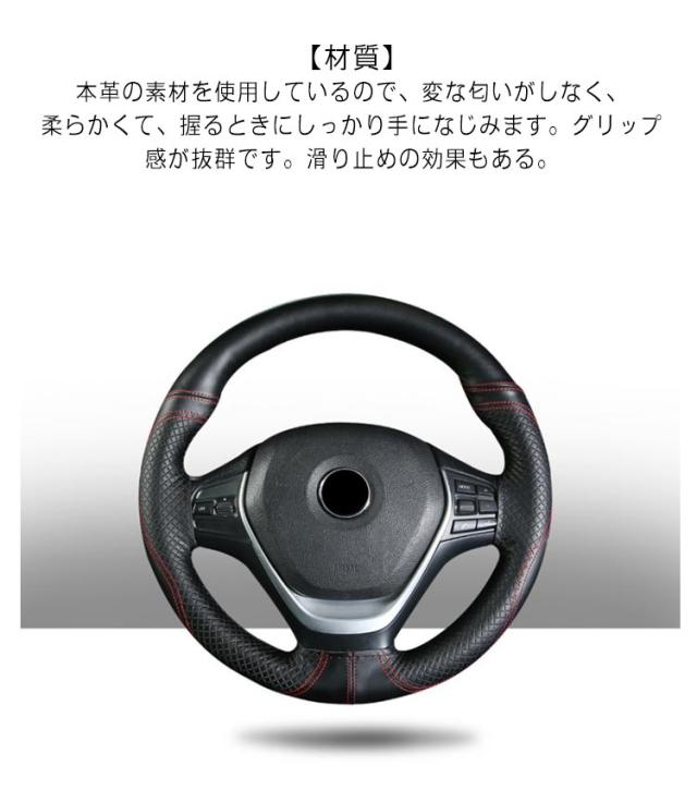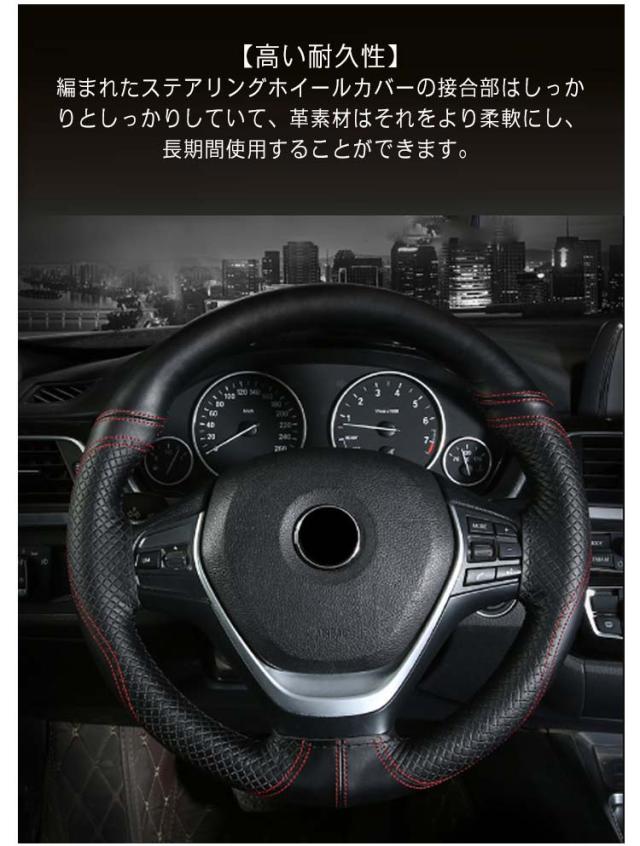 | 【高い耐久性】編まれたステアリングホイールカバーの接合部はしっかりとしっかりしていて、革素材はそれをより柔軟にし、長期間使用することができます。 【材質】本革の素材を使用しているので、変な匂いがしなく、柔らかくて、握るときにしっかり手になじみます。グリップ感が抜群です。滑り止めの効果もある。 【編み込み式ハンドルカバーの特長】取り付け後にカバーに隙間ができないので指が引っかかったり違和感がない。ホコリなどの汚れが隙間に入り込まないので衛生的。太くなり過ぎないので運転していても疲れにくい。 ウレタンハンドルと違い、冬は冷たくない、夏は触れない程熱くない。ハンドル、ハンドルカバーの劣化を防げる。 【取り付け】取り付けられた針と糸でそれを縫う、ステアリングホイールのまわりでそれをラップ。絶妙で繊細な仕上がり、ファッショナブルで品質保証、効率的な滑り止め。 【内容と適応車種】編み式ハンドルカバーは丸型ハンドルに、トヨタ、ホンダ、ニッサン、マツダ、ダイハツ、スバル、スズキ、乗用車、軽自動車など様々な車種に適応します。ご車のハンドルサイズを測って、ご確認の上ご購入ください。 | |
