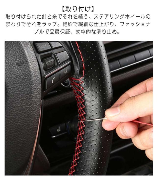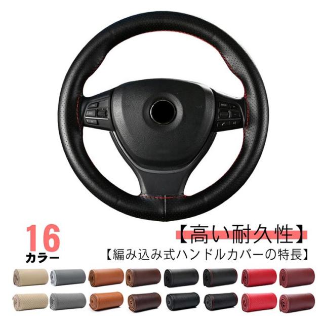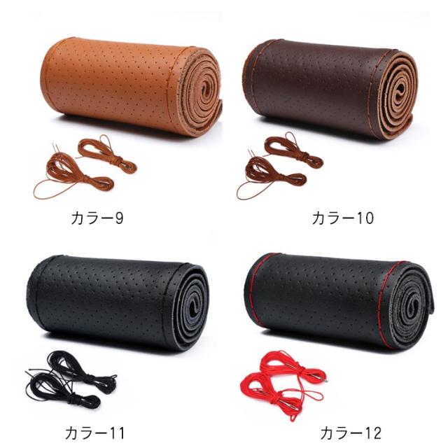 全16色!牛革 ステアリングカバー ハンドルカバー 編み上げ 無地 手縫い 全16色!牛革 軽量 レザー ステアリング ハンドル カバー シンプル おしゃれ 滑り止め 本革 薄手 耐摩耗 インテリア 車内用品 内装用