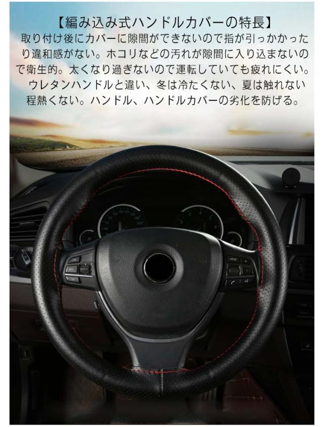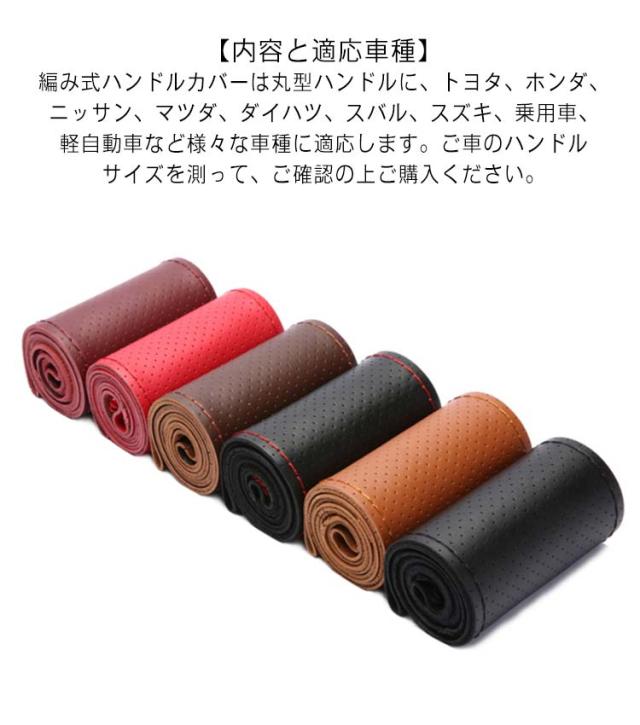 | 【編み込み式ハンドルカバーの特長】取り付け後にカバーに隙間ができないので指が引っかかったり違和感がない。ホコリなどの汚れが隙間に入り込まないので衛生的。太くなり過ぎないので運転していても疲れにくい。 ウレタンハンドルと違い、冬は冷たくない、夏は触れない程熱くない。ハンドル、ハンドルカバーの劣化を防げる。 【高い耐久性】編まれたステアリングホイールカバーの接合部はしっかりとしっかりしていて、革素材はそれをより柔軟にし、長期間使用することができます。 【材質】本革の素材を使用しているので、変な匂いがしなく、柔らかくて、握るときにしっかり手になじみます。グリップ感が抜群です。滑り止めの効果もある。 【取り付け】取り付けられた針と糸でそれを縫う、ステアリングホイールのまわりでそれをラップ。絶妙で繊細な仕上がり、ファッショナブルで品質保証、効率的な滑り止め。 【内容と適応車種】編み式ハンドルカバーは丸型ハンドルに、トヨタ、ホンダ、ニッサン、マツダ、ダイハツ、スバル、スズキ、乗用車、軽自動車など様々な車種に適応します。ご車のハンドルサイズを測って、ご確認の上ご購入ください。 | |