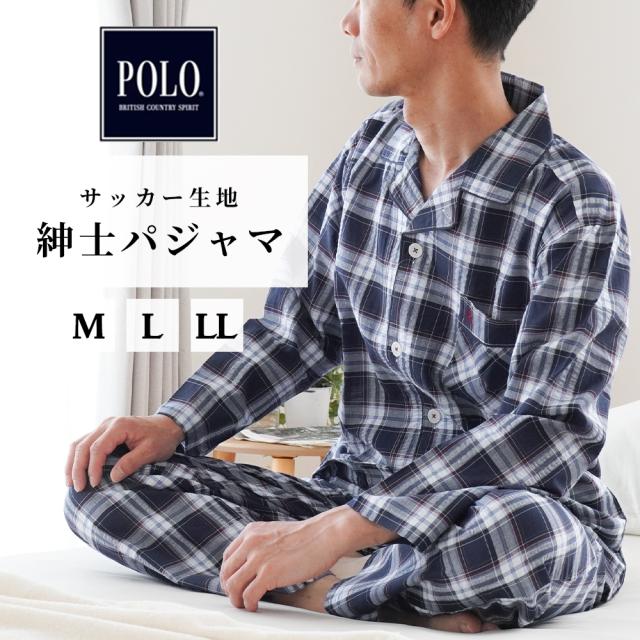 パジャマ メンズ 夏用 POLO BCS 紳士 ブランド ポロ・ビーシーエス 春夏 綿100 コットン 涼しい 寝巻 ナイトウェア ルームウェア サッカー生地 ギフト お中元 誕生日祝い 父の日 2025y5