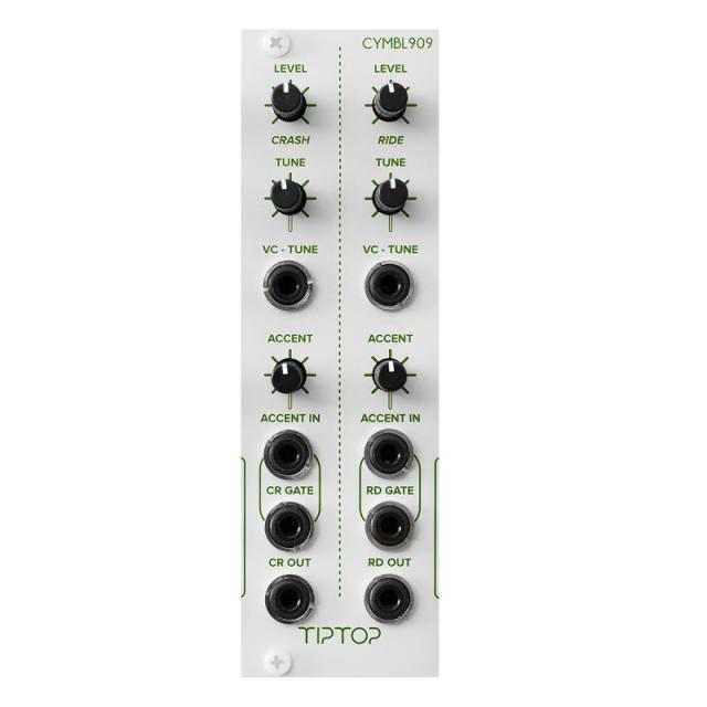 CYMBL909はTR-909のクラッシュ・シンバルとライド・シンバルを忠実に再現したモジュールです。オリジナルと同様にオシレーター部はローファイ6-Bitサンプルを使用。Level と Tune をマニュアルで調節できるのはもちろん、Tuneは外部CVでコントロールも可能。Tune の可変幅はオリジナルよりも広く、低く設定すれば重いインダストリアルサウンドに、高く設定すればハイハットの様なサウンドになります。