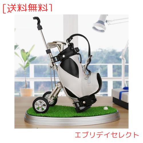 ゴルフペン ペン立て3本のペン ゴルフ景品 ゴルフ記念品 ゴルフギフト 卓上スタンド ミニPUゴルフバッグ付き (黒+白(芝生付き))