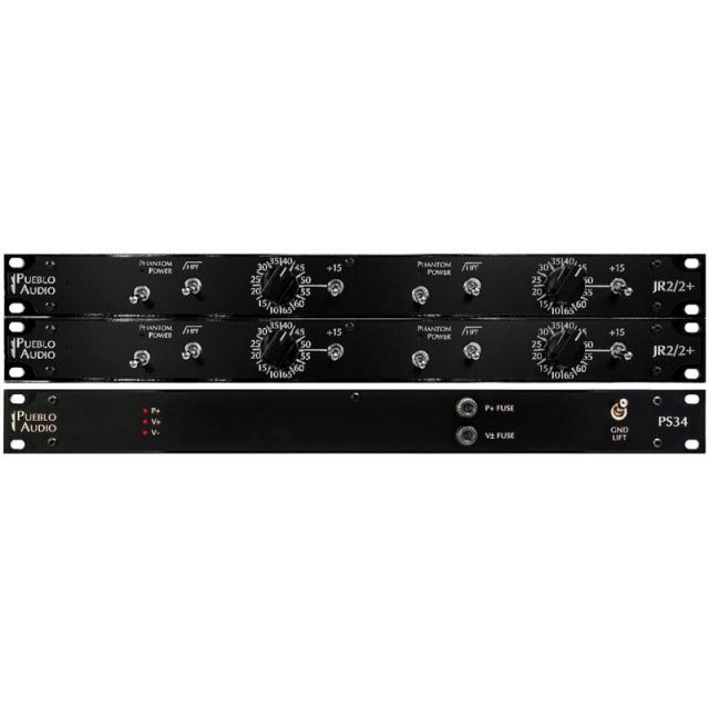 Pueblo Audio JR シリーズは、独立したファンタム電源ユニットとマイクプリアンプユニットからなるJRプリアンプと PS34パワーサプライを組み合わせて構築できるモジュラーシステムです。ファンタム電源ユニットとマイクプリアンプユニットは独立しており、ファンタム電源を必要としないダイナミックマイク、リボンマイク、真空管マイクとファンタム電源が必要なコンデンサーマイクの構成に合わせて自由に組み合わせることができます。外部電源仕様になることでJRシリーズの重要なオーディオ回路は、電磁気干渉、熱、振動から解放されるだけでなく、分解能の向上や機器寿命を長く得ることができます。新モジュールのJR2/2+は、ハリウッド最前線のエンジニア達からのリクエストで機能拡張された特別仕様のJR2/2となり、汎用性の高いミニマムなシステムに最適化します。