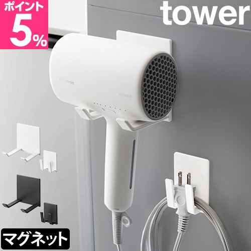 山崎実業 ドライヤーホルダー マグネットドライヤー&コードホルダー タワー 1739 1740 ドライヤースタンド 引っ掛ける 整理 片付け tower 洗面収納 浮かせる収納 コード収納 ドライヤー収納 yamazaki タワーシリーズ