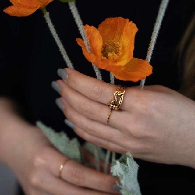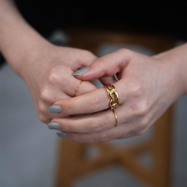 | 水にも強く、金属アレルギーの方でも比較的安心して使えるお肌に優しいサージカルステンレス製のリングです。 丸みのある柔らかなニュアンスラインが印象的な抜け感のあるデザイン。 着ける向きを変えるとまた少し違った表情にもなり、程よいボリューム感が手元にアクセントを与えてくれます。 | |