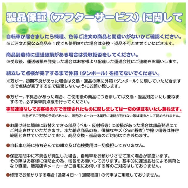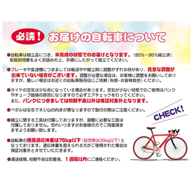 ●自転車は100%完成車ではございません。(完成率85%〜95%)