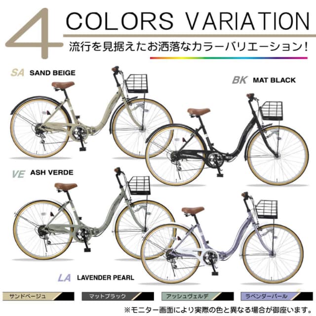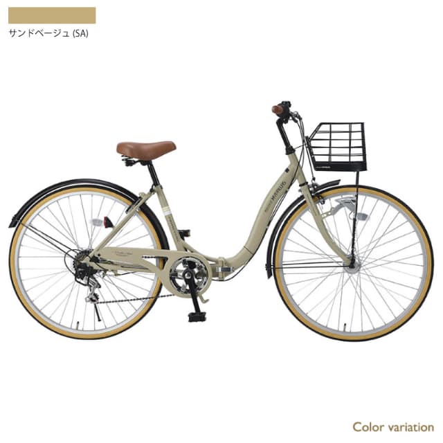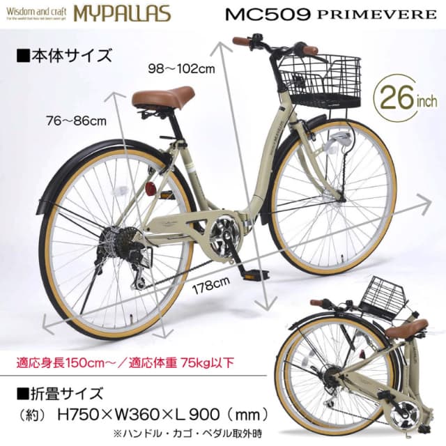 MYPALLAS マイパラス 折りたたみシティサイクル 26インチ MC509 サンドベージュ/マットブラック/アッシュヴェルデ/ラベンダーパールの4カラー LEDオートライト装備 上品なスタイルで乗りやすいループフレーム 機能性も抜群のファッショナブルサイクル 北海道/四国/九州/沖縄/その他離島部発送不可 代引不可