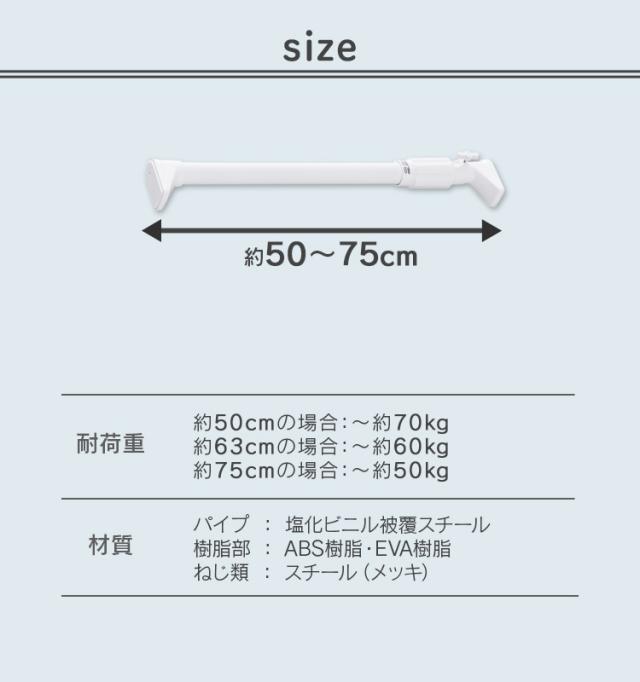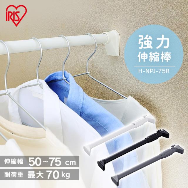 ★クーポンあり★ 突っ張り棒 強力 物干し 突っ張り 収納 洗濯物干し ハンガーラック ポールハンガー クローゼット 衣類収納 50〜75cm 取付簡単 工具不要 強力伸縮棒 ホワイト ブラック グレー アイリスオーヤマ H-NPJ-75R