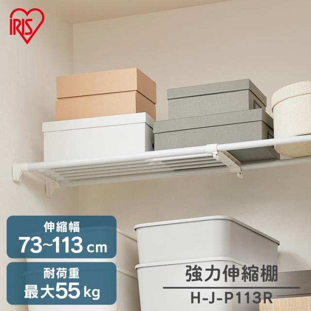 ★クーポンあり★ 突っ張り棚 強力 収納 洗面所 突っ張り棒 ラック 省スペース 脱衣所 ランドリー 洗濯機上 押し入れ 奥行24.8cm 73〜113cm 段差対応 取付簡単 工具不要 強力伸縮棚 ホワイト ブラック アイリスオーヤマ H-J-P113R
