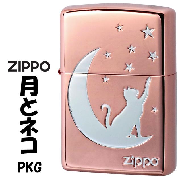 ZIPPO ライター 月とネコ ピンクゴールドメッキ ニッケルメッキ ポリッシュ仕上げ TUKINEKO-PKG 猫 ネコ おしゃれ かわいい メンズ レディース ギフト プレゼント ジッポ ライター 送料無料 メール便対応
