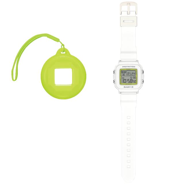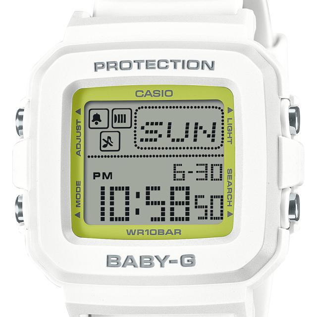 時刻が見やすいデジタル液晶に、BABY-Gらしい遊び心をプラスしました。耐衝撃構造、10気圧防水などの機能面も充実しています。