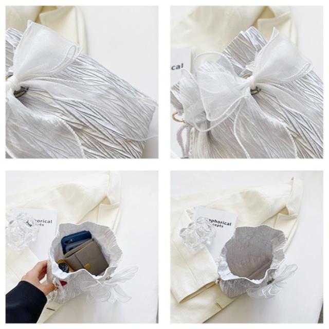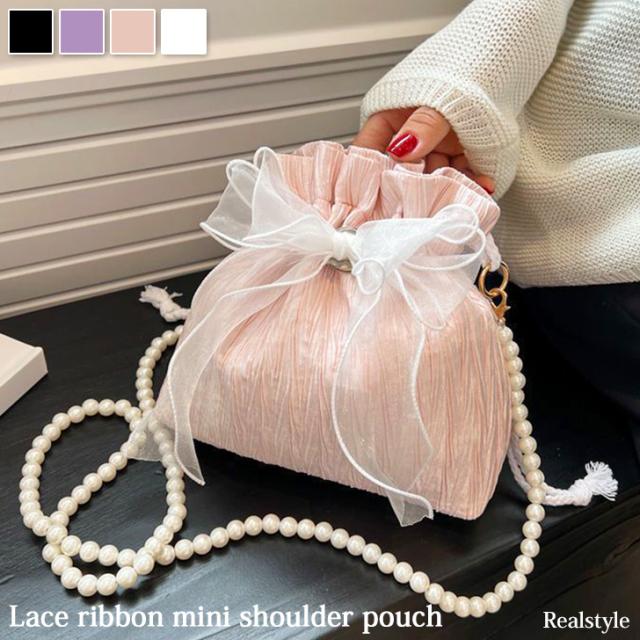 新作 ショルダーバッグ 巾着バッグ パール レース リボン おしゃれ かわいい ポーチ 小物入れ レディース 軽い 小さい 韓国 斜めがけ ミニ 結婚式 夏 おしゃれ 可愛い パーティー バレエコア 浴衣バッグ