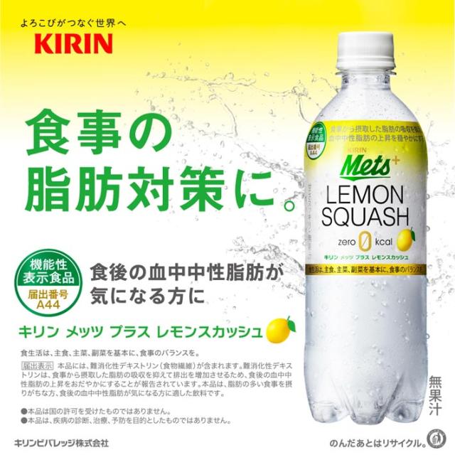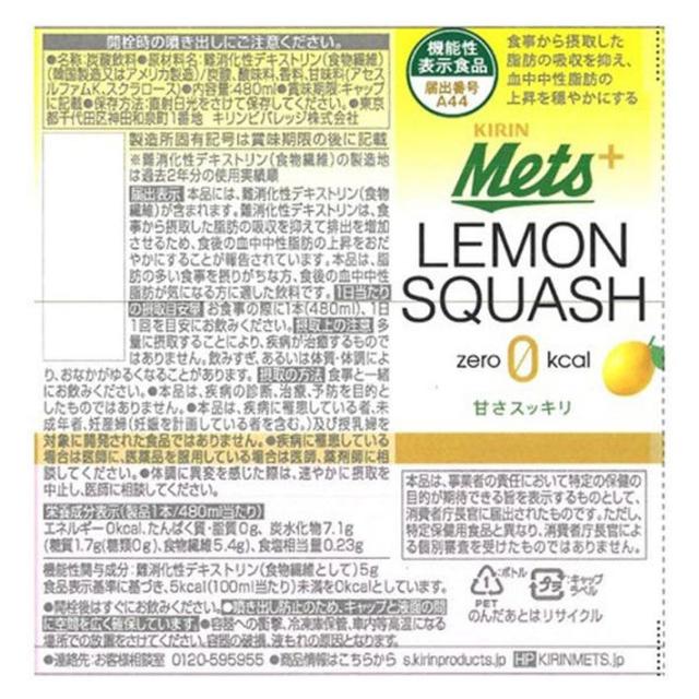 キリン メッツ プラス レモンスカッシュ 480ml ペット 24本 ●1ケース 【20本+4本無料】機能性表示食品 送料無料!!(北海道、沖縄、離島は別途700円かかります。)
