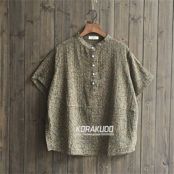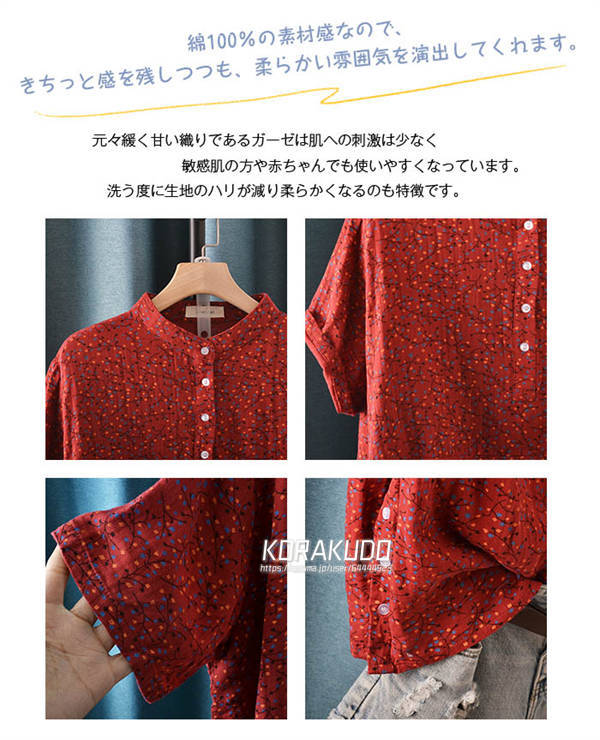 ガーゼ シャツ 夏 レディース コットン100% ガーゼシャツ 半袖 ダブルガーゼ レディースシャツ トップス 総柄 半袖シャツ 薄手シャツ ゆったり ゆるー 体型カバー ガーゼ 夏シャツ ナチュラル なつ 小柄 総柄シャツ
