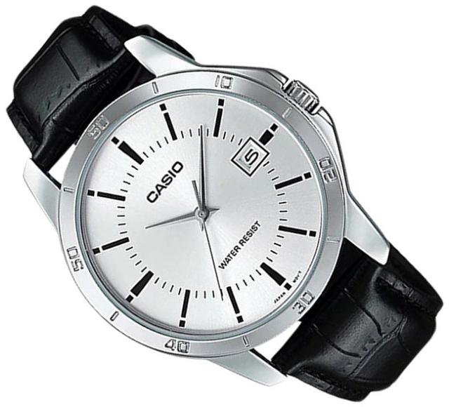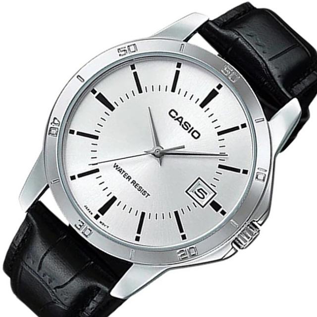 CASIO【カシオ/スタンダード】メンズ腕時計 アナログモデル シルバー文字盤 ブラックレザーベルト 海外モデル MTP-V004L-7A(送料無料)