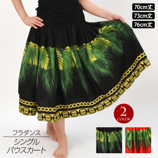 フラダンス衣装 シングルパウスカート ダンス 衣装 フラ シングル レディース 綿混 スカート ブラック レッド/70cm丈-73cm丈-76cm丈 SC43G25