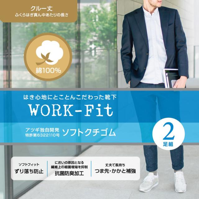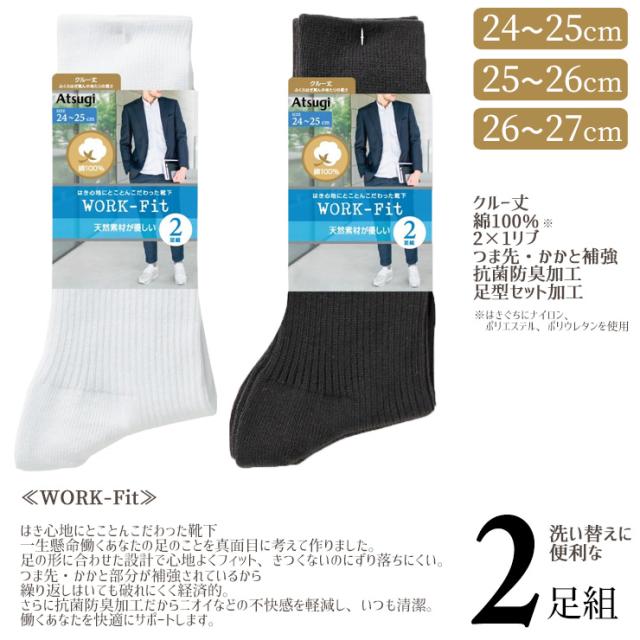 【2点以上お買い上げで送料無料】ソックス メンズ アツギ new ワークフィット 綿100% クルー丈 GC48092 2足組 紳士靴下 ビジネスソックス クルーソックス リブソックス リブ編み コットン 通勤 通学 出張 2足 抗菌防臭 丈夫 アツギ atsugi(06154)