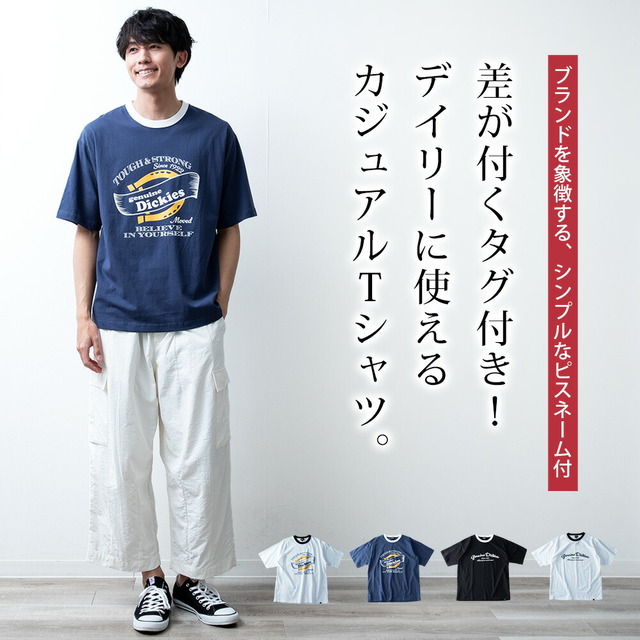 半袖tシャツ メンズ GENUINE 半袖 おしゃれ リンガープリント ディッキーズ クルーネック トップス 半袖Tシャツ メンズファッション Tシャツ 綿100 春夏 ホワイト プリントtシャツ ギフト プリントTシャツ 全4色 ブラック プリント