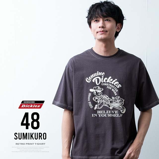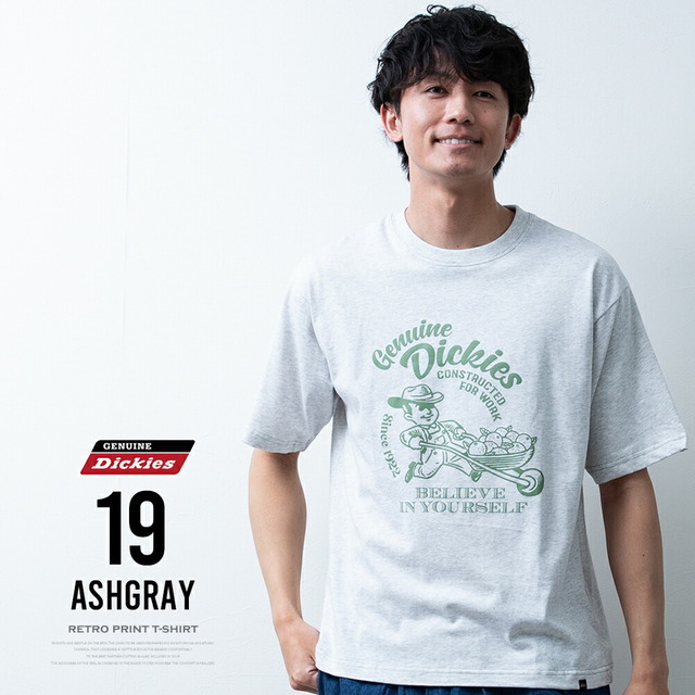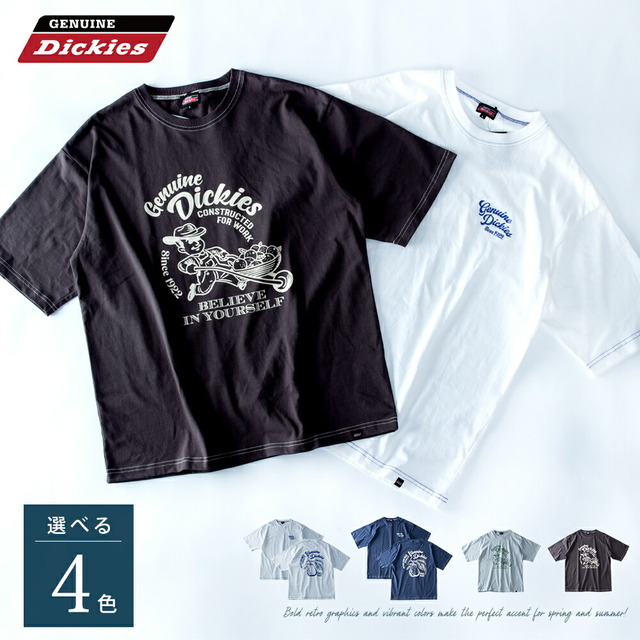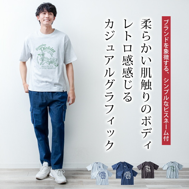 半袖tシャツ メンズ 半袖 tシャツ ロゴ プリント ディッキーズ レトロ 夏 Tシャツ メンズファッション アッシュグレー バックプリント Dブルー Uネック ゆったり プレゼント スミクロ ギフト GENUINE プリントTシャツ 春 綿 全4色