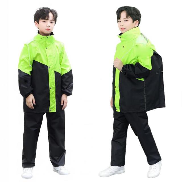 [Limspace] レインコート キッズ レインスーツ 上下セット ランドセル対応 レインウェア 合羽 カッパ 子供 男の子 女の子 おしゃれ 超撥水 防風 夜間反射 小学生 中学生 通学 自転車 遠足 旅行 アウトドア 梅雨対策 収納袋付き (グリーン