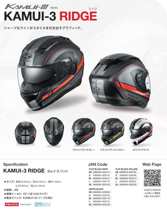 ★送料無料★OGK KAMUI-3 RIDGE(リッジ)シャープなラインが「稜線」を描くスタイリッシュなグラフィックデザイン。あったらいいなを全部つめ込んだ快適追求ヘルメット。バイク/オートバイ用フルフェイスヘルメット /オージーケー