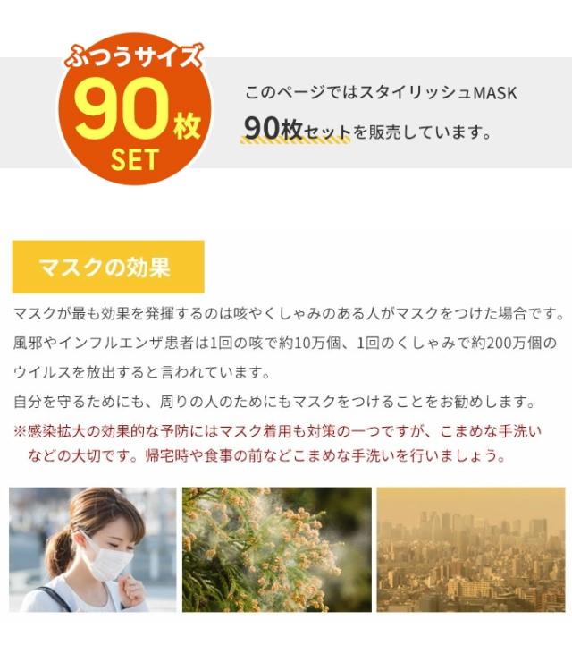 | 【スタイリッシュMASK 】 同色15枚入/同色90枚入/アソート18枚入 ※このページは[スタイリッシュMASK 同色90枚入]を販売しております。 |