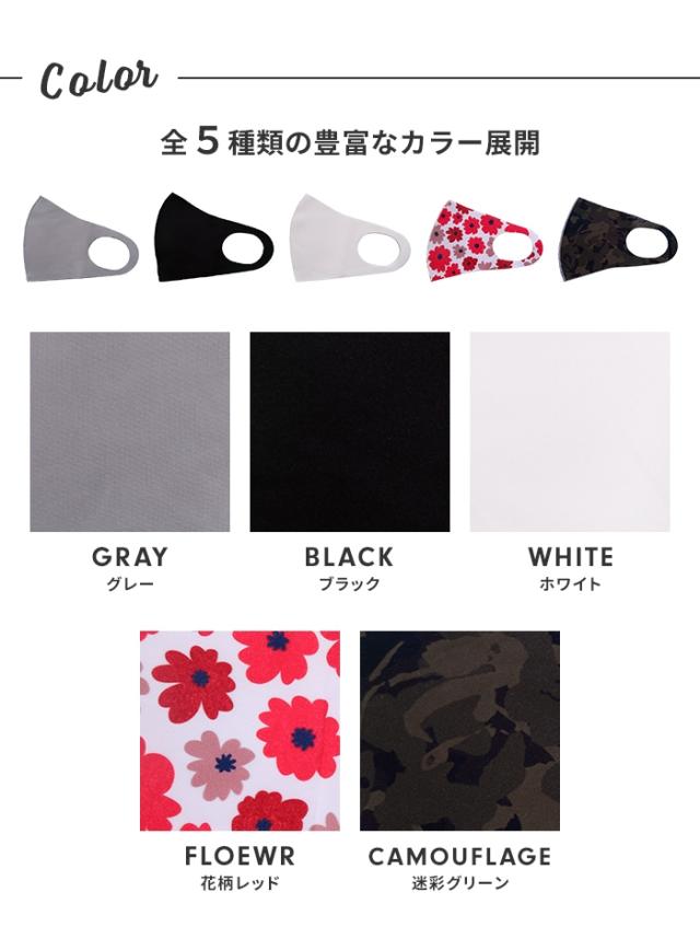ホワイト、グレー、ブラック、迷彩グリーン、花柄レッド